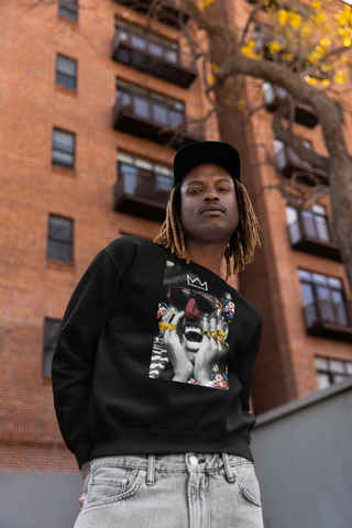 Premium 50% cotton, 50% polyester true to fit Fleece Sweatshirt and hoodies Embellished with "T-shirt ART" by artist R Max