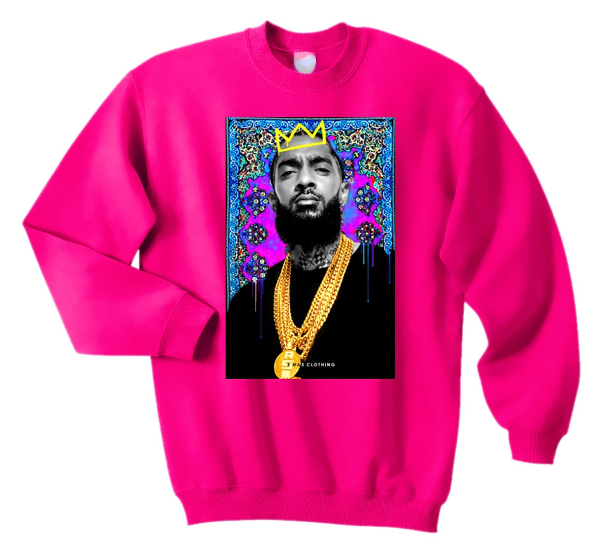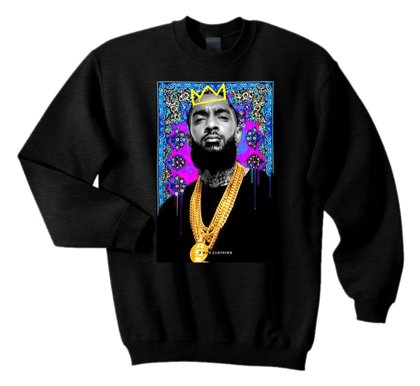 Premium 50% cotton, 50% polyester true to fit Fleece Sweatshirt. and hoodies Embellished with "T-shirt ART" by artist R Max.